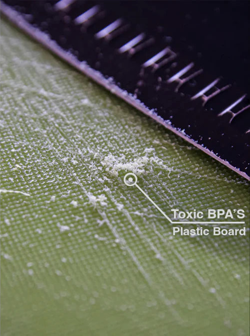 • Contains harmful chemicals—many plastic boards contain BPA, phthalates, and other toxic additives that can leach into food, especially when scratched or exposed to heat.